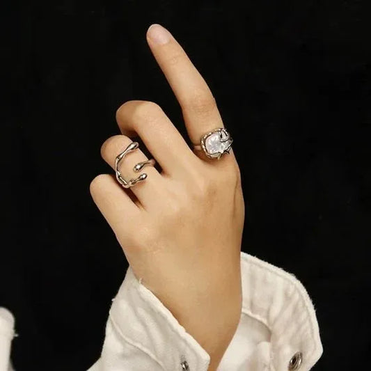 CELESTIAL PEARL WAVE RING (SET OF 2)