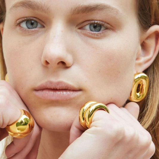 The Stacey Stack Rings is a set of 3 adjustable rings that are versatile, lightweight, and easy to pair with just about anything in your wardrobe. Handcrafted in bronze with a choice of 22k Gold or a Silver Rhodium Finish. AEQEA's Sunday Ring combines a laid-back lounge mood with a chic statement look. While these little rings are perfect for when you're in a stacking state of mind they are just as likely to become your everyday signatures!