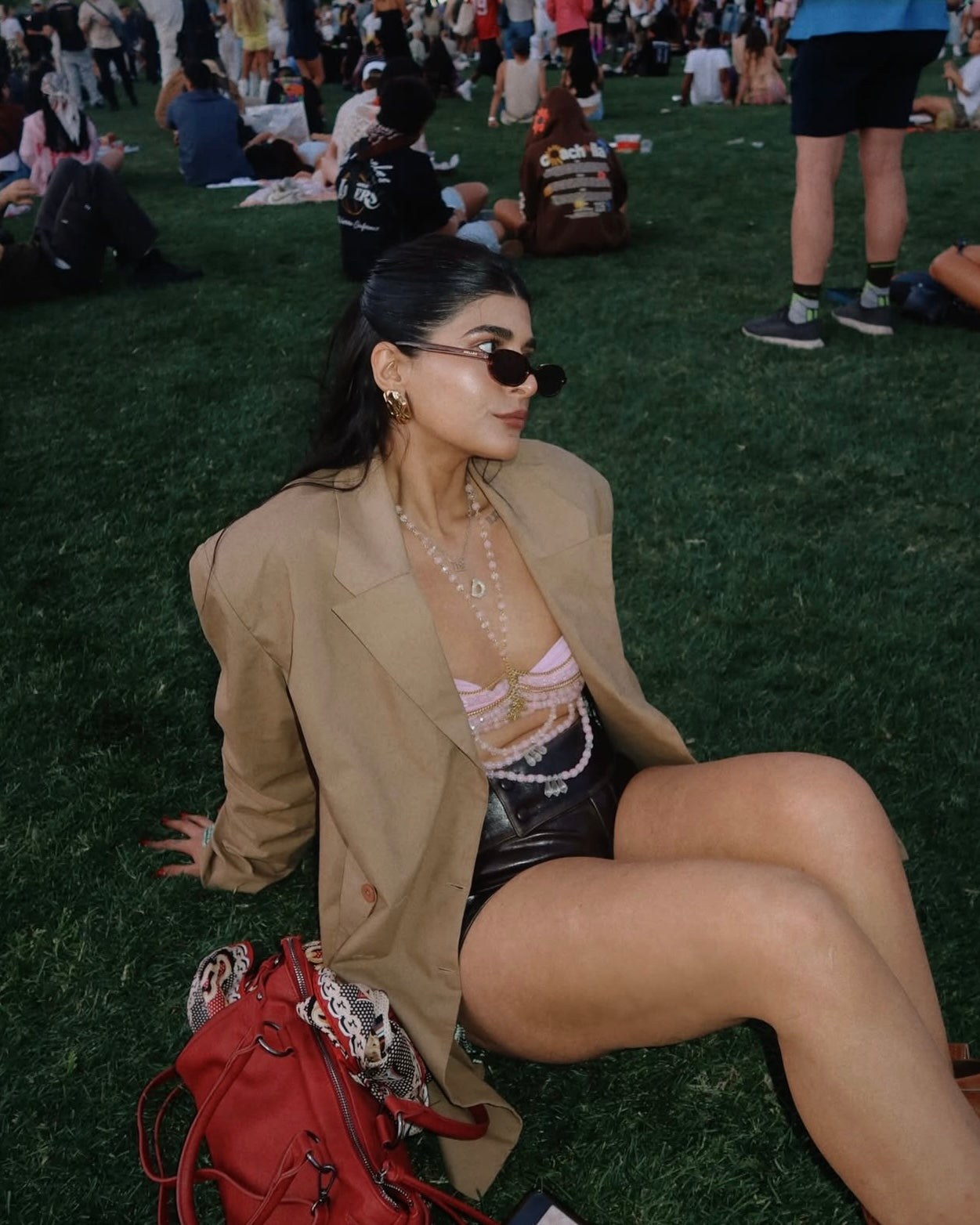 Deeksha in AEQEA’s Golden Hive Earrings at Coachella for Bieberchella X Rhode X Magnum
